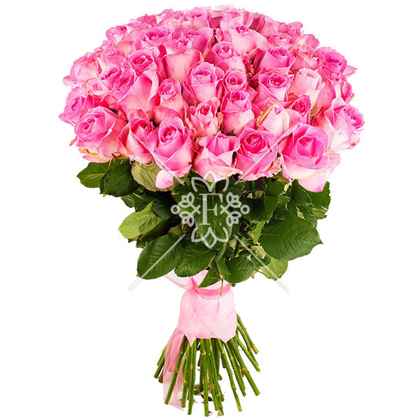 роза розовая - 51 шт., упаковка, лента.